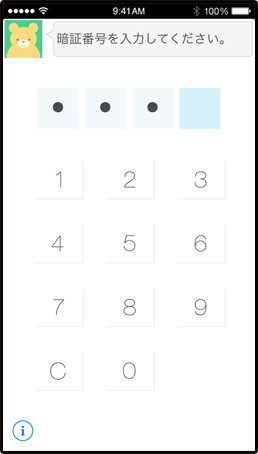 暗証番号を設定すれば、アプリの起動時に暗証番号の